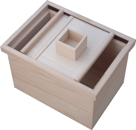 桐材は樹木の中でも比重が軽く、柔らかく狂いも少ない上、木目が美しいので、これを用いた箱は最上の品とされています。