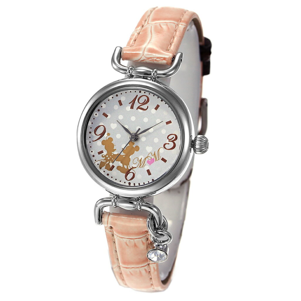 アンティーク風な文字盤にミッキーやミニーのモチーフが可愛らしい腕時計。