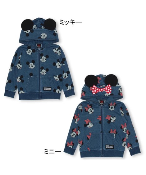 ベビーサイズ キッズ 男の子 女の子 リンクコーデ 親子ペア 長袖 トップス 羽織り ジップアップ フード付き■素材本体:綿55%,ポリエステル40%,ポリウレタン5% リブ:綿95%,ポリウレタン5%■仕様ニットデニム/インディゴフード/耳付き/ミニーのみリボン付きカンガルーポケットタグ/プリントフロントファスナー/80〜90cm:ファスナーガード付※写真のプリント位置と多少誤差が生じる場合あり■サイズ(単位:cm)着丈/胸回り/肩幅/裄丈80cm 35/56/22/4090cm 38/60/23/44100cm 41/64/25/48110cm 43/68/27/52120cm 46/72/29/57130cm 50/76/31/61140cm 54/80/33/66150cm 58/84/35/73※商品により多少誤差あり