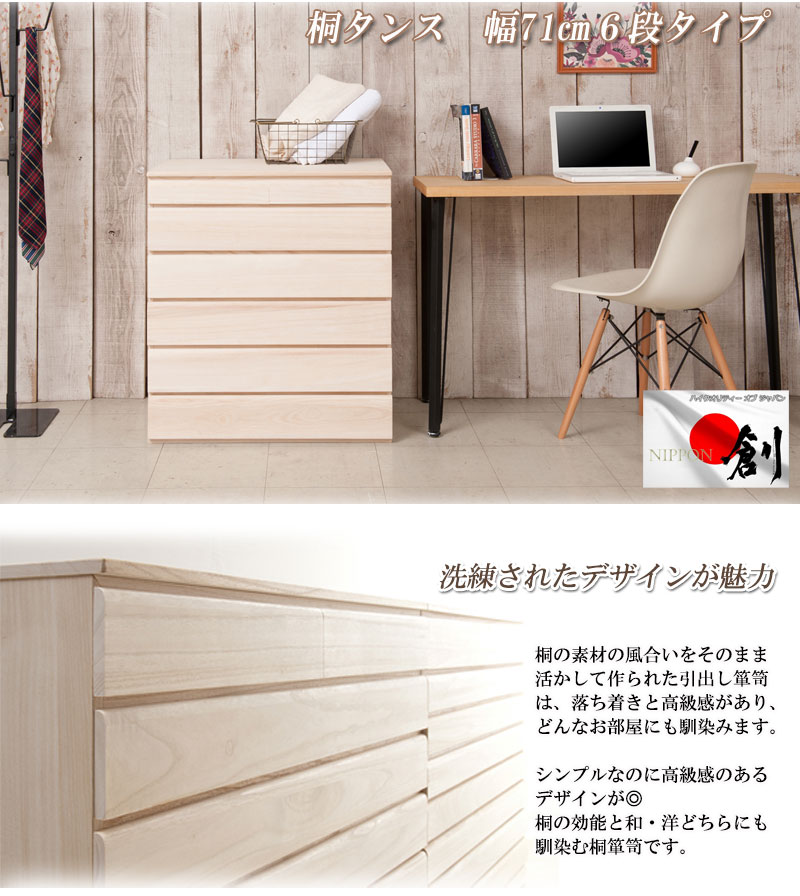 ■商品の仕様/本体:天然木桐材、引出し底板・背板:天然木桐化粧板■商品サイズ/本体:(約)幅71×奥行44×高さ78.5cm■引出し内寸:(約)幅(小)29.5(大)64×奥行38.5×深さ(小)4.5(大)10cm■付属品/上下連結金具2個■耐荷重量/天板:(約)30kg■商品重量/(約)18kg■日本製■完成品 ■送料 送料無料 北海道・沖縄・離島を含む(一部配送不可地域)のご注文は配達不可のためキャンセルさせて頂きます。