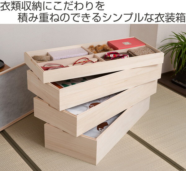 着物収納に適したゆったりサイズ、仕切り板でスッキリ幅95cmの少し大きめのサイズの衣装箱なので、二つ折りの着物をたとう紙のまま収納できるサイズです。